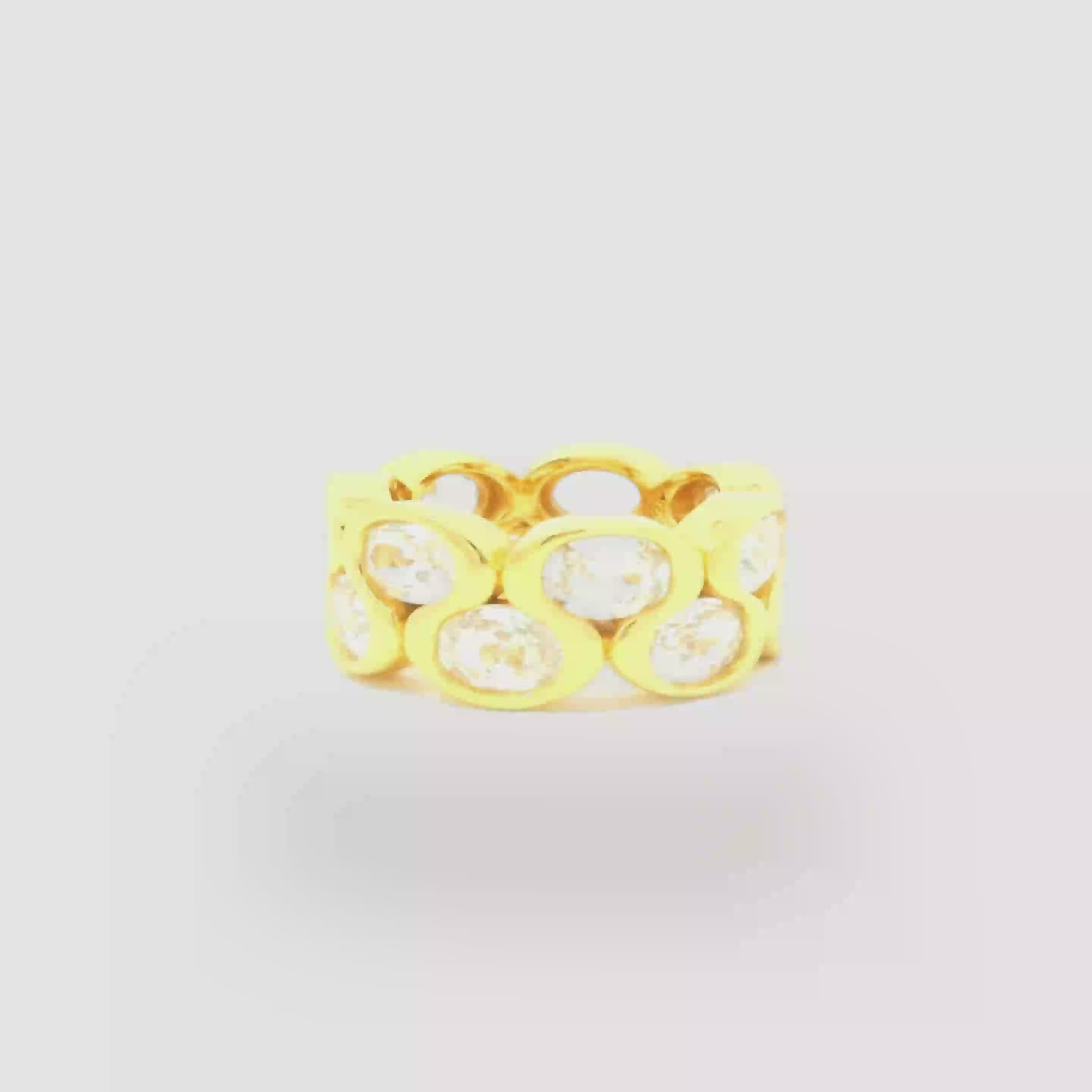 The Dinamismo Band is handcrafted with approximately 6.4 carats of custom oval cut white sapphire and 5.6 grams of 18k rose yellow vermeil.