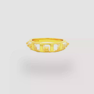 The Piramide Band is handcrafted with approximately 5 carats of custom pyramid cut diamonds and 6 grams of 18k yellow gold.