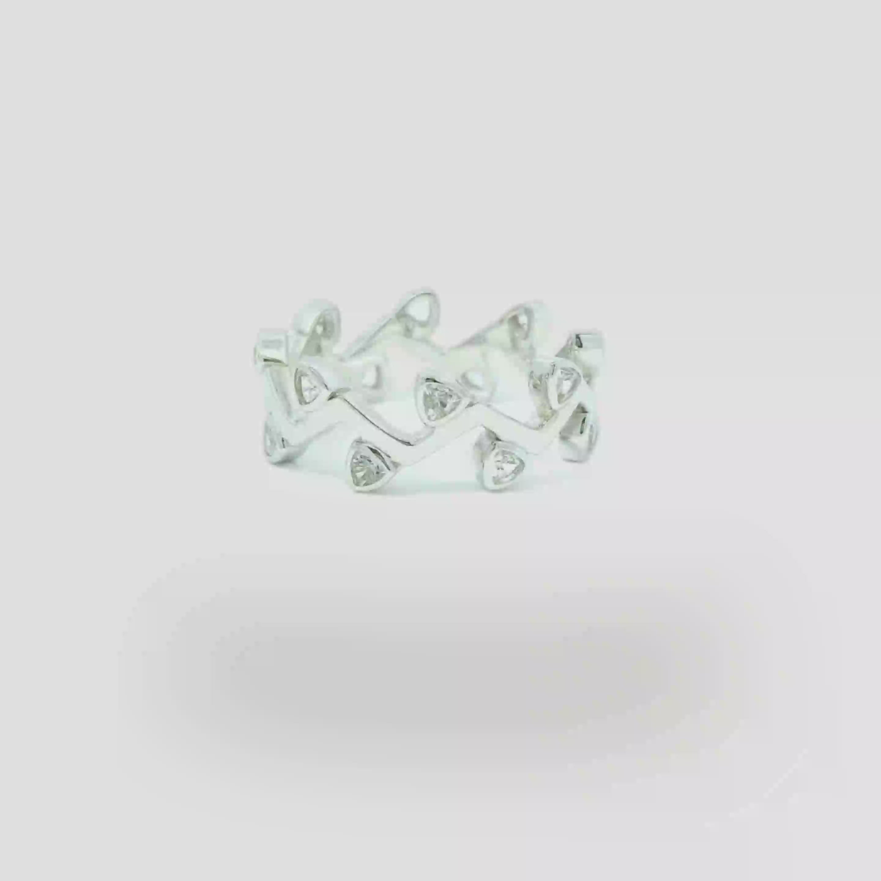 The Vite di Volpe Band is handcrafted with approximately 1.3 carats of custom trillion cut diamonds and 5 grams of 18k white gold.