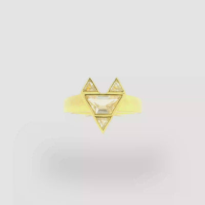 The Volpaccio Ring is handcrafted with our signature custom cut white sapphire Di Volpe motif in approximately 1.65 carats and 8.7 grams of 18k yellow gold vermeil.