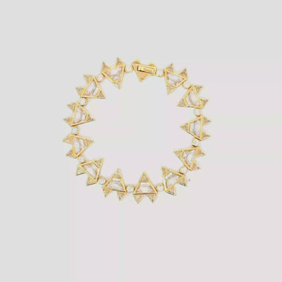 The Volpaccio Tennis Bracelet is handcrafted with approximately 19-21 carats of our signature custom cut white sapphire Di Volpe motifs and 15.1-16 grams of 18k yellow gold vermeil.