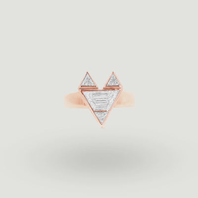 The Volpetto Ring is handcrafted with an approximately 1.75 carat signature custom cut Di Volpe diamond motif and 18k rose gold.