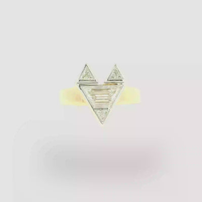 The Volpetto Ring is handcrafted with an approximately 1.75 carat signature custom cut Di Volpe diamond motif and 18k yellow and white gold, two-tone setting.