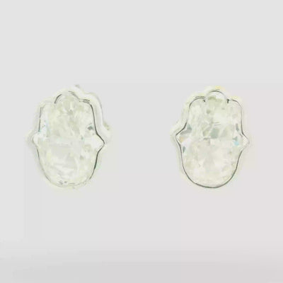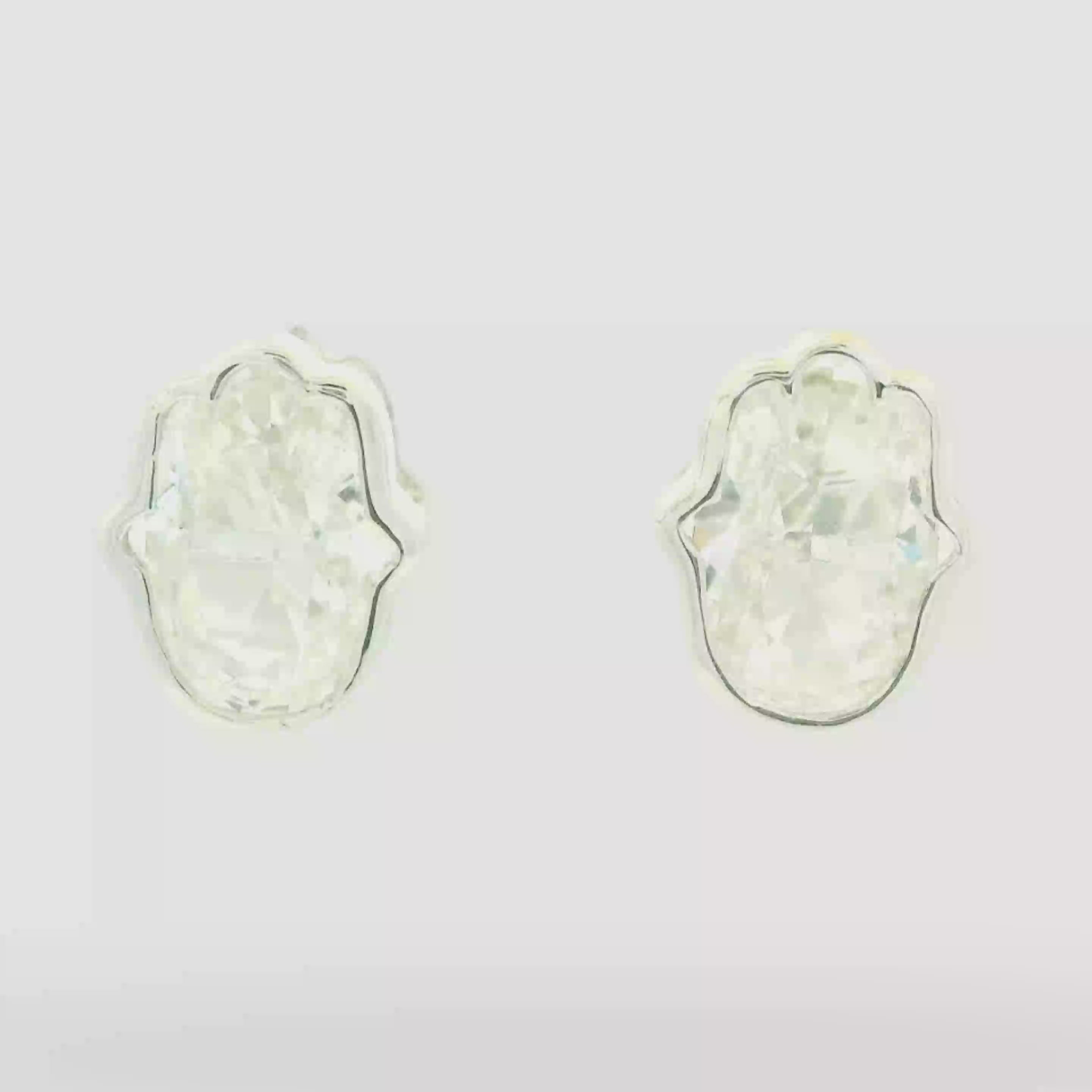 The La Mano Earrings are handcrafted with approximately 8 carats of custom, hand faceted and polished, hand of god cut cultured white sapphires and 18k white gold plated sterling silver.