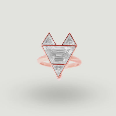 The Volpona Ring is handcrafted with an approximately 3.75 carat signature Di Volpe cut diamond motif and 5.6 grams of 18k rose gold.