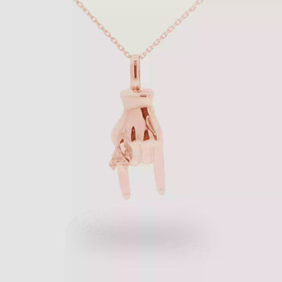 The Mano Cornuto Pendant is handcrafted with approximately 4.84 grams of 18k rose gold and melee cultured diamonds.