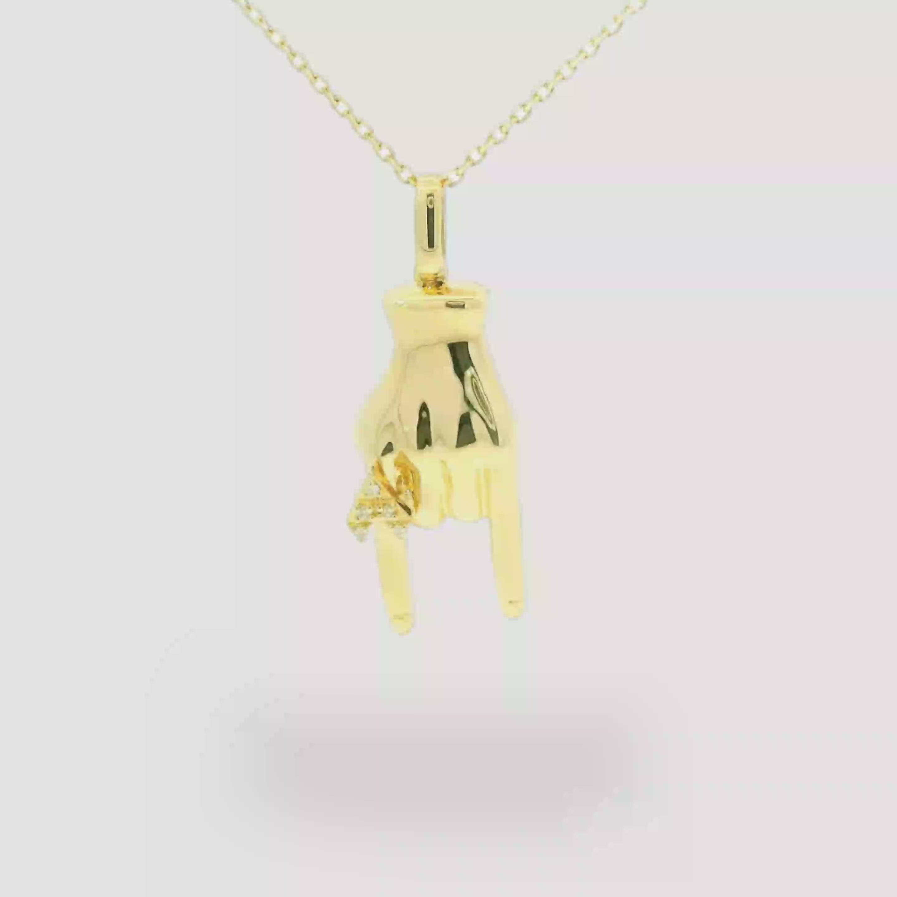 The Mano Cornuto Pendant is handcrafted with approximately 4.84 grams of 18k yellow gold and melee cultured diamonds.