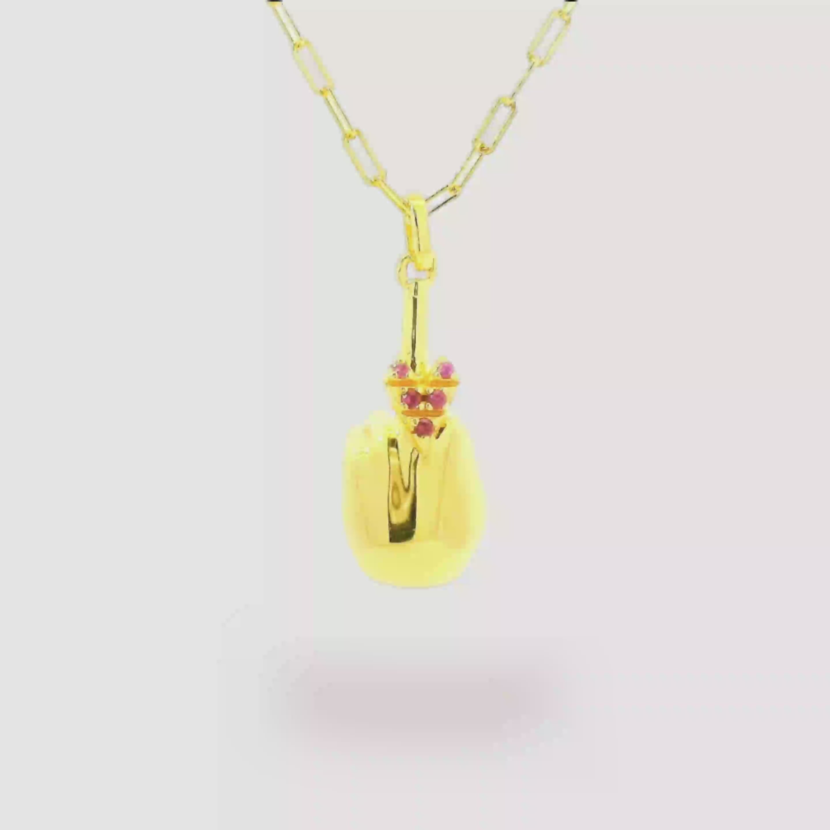 The Milano Borsa Pendant is handcrafted with approximately .05 carats of melee rubies and 3.8 grams of 18k yellow gold vermeil.