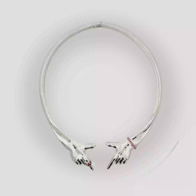 The Faccio Così Collar is handcrafted with approximately 0.53 carats of cultured ruby and 179 grams of palladium coated, rhodium plated sterling silver.