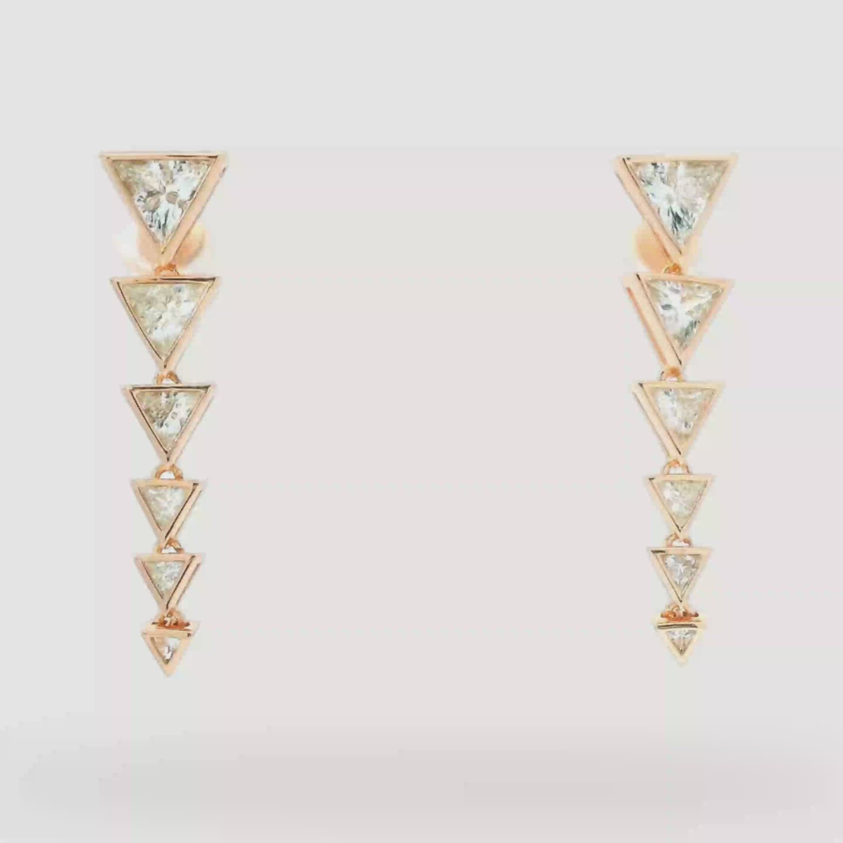 The Triangoli Earrings are handcrafted with approximately 5.3 carats of custom triangle cut diamonds and 6 grams of 18k rose gold.