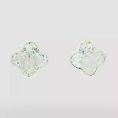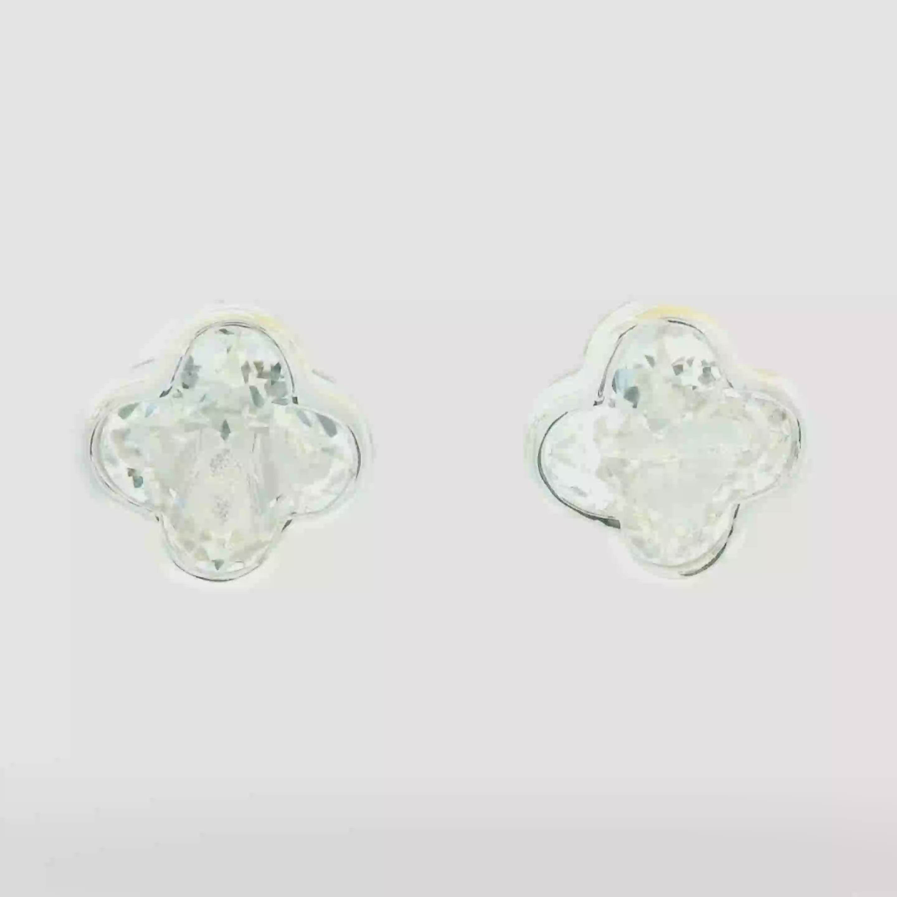 The Trifoglio Earrings are handcrafted with approximately 4 carats of custom, hand faceted and polished, clover cut white sapphire and 18k white gold plated sterling silver.